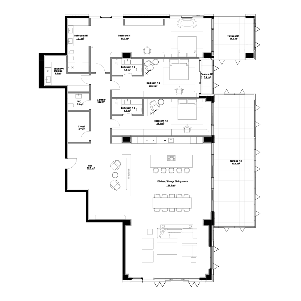 - Balconies and terraces – fully finished