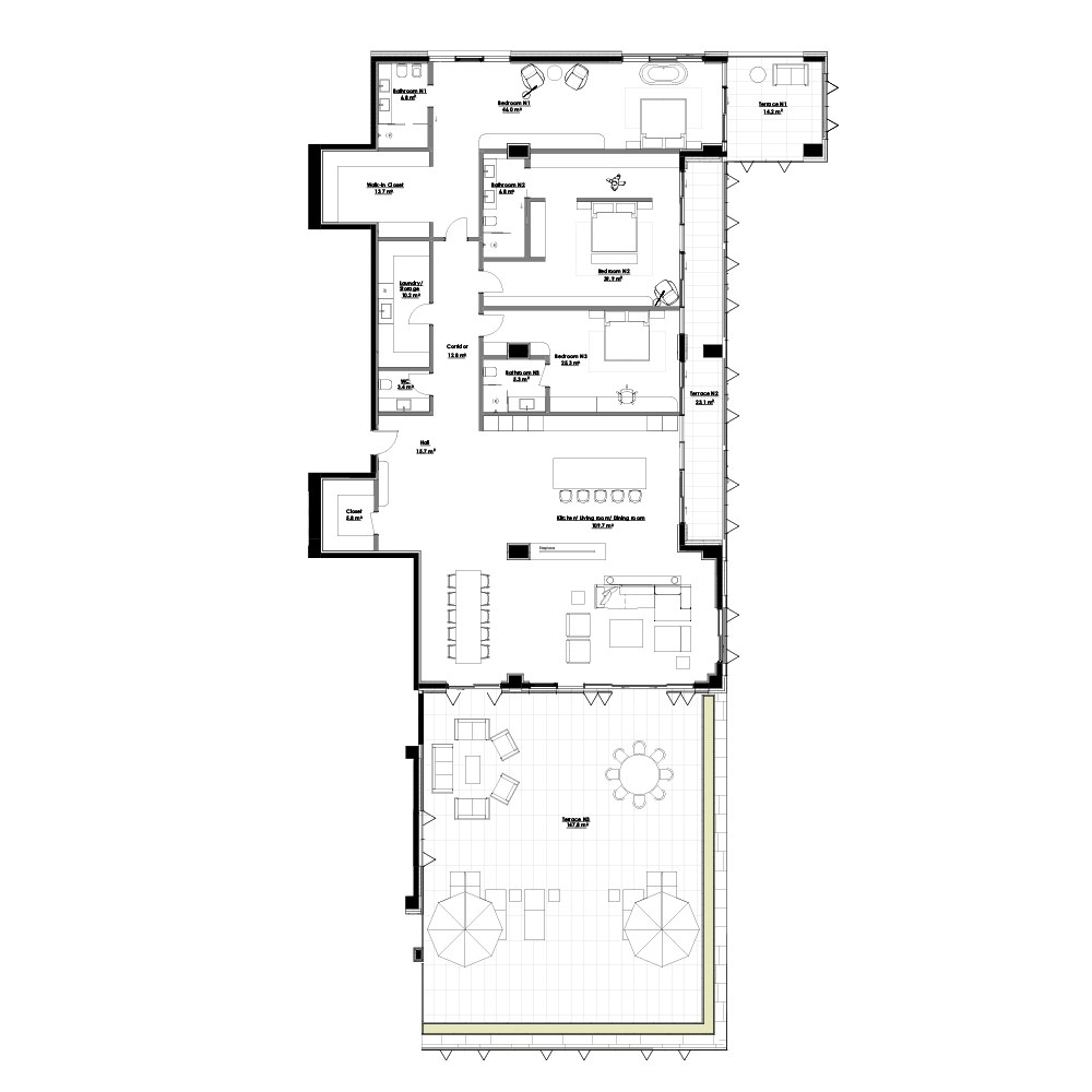 - შენიშვნა: C ბლოკის საერთო ზონა მოიცავს დერეფნებს, ვესტიბიულებს, პარკინგს, ტექნიკურ აივნებსა და ოთახებს, სახურავს, კიბის უჯრედსა და საერთო სარგებლობის ტერასებს.